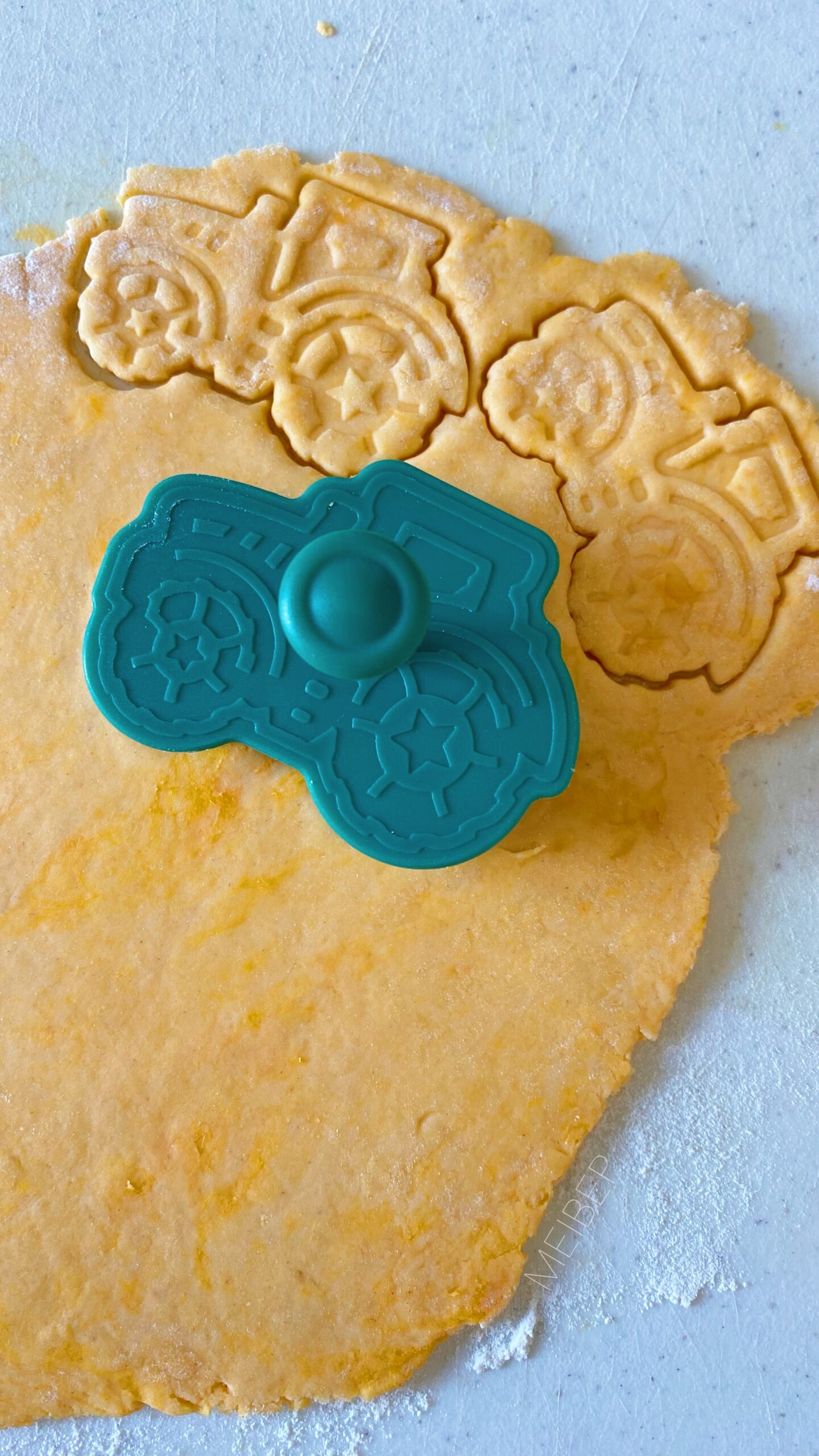 - Verwarm de oven voor op 180 graden Celsius. Haal 1 van de 3 deeg balletjes eruit en rol het uit met een deegroller. Steek er vormpjes uit met een koekjes vorm en leg op een met bakpapier bekleedde bakplaat. Herhaal met de overige 2 deeg ballen tot je alle koekjes hebt gemaakt.